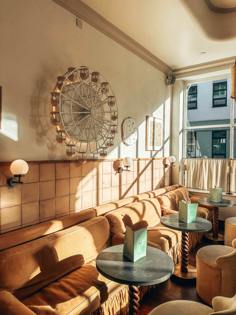 The moment we stepped through the front doors, we were welcomed by warm, cosy air – a comforting contrast after being out in the wind and instantly found ourselves in the hotel’s reception and lounge bar. I noticed myself looking around the room, taking everything in and every time, there was something new to notice – striking wall art, a miniature replica of the iconic Margate Ferris Wheel, plush lounge seating perfect for sinking into – all so beautiful. Similar to their properties we’ve experienced in Bath and Brighton, it’s very obvious that a lot of thought has gone into creating a space that’s effortlessly stylish for their guests, blending local charm with thoughtfully designed spaces.