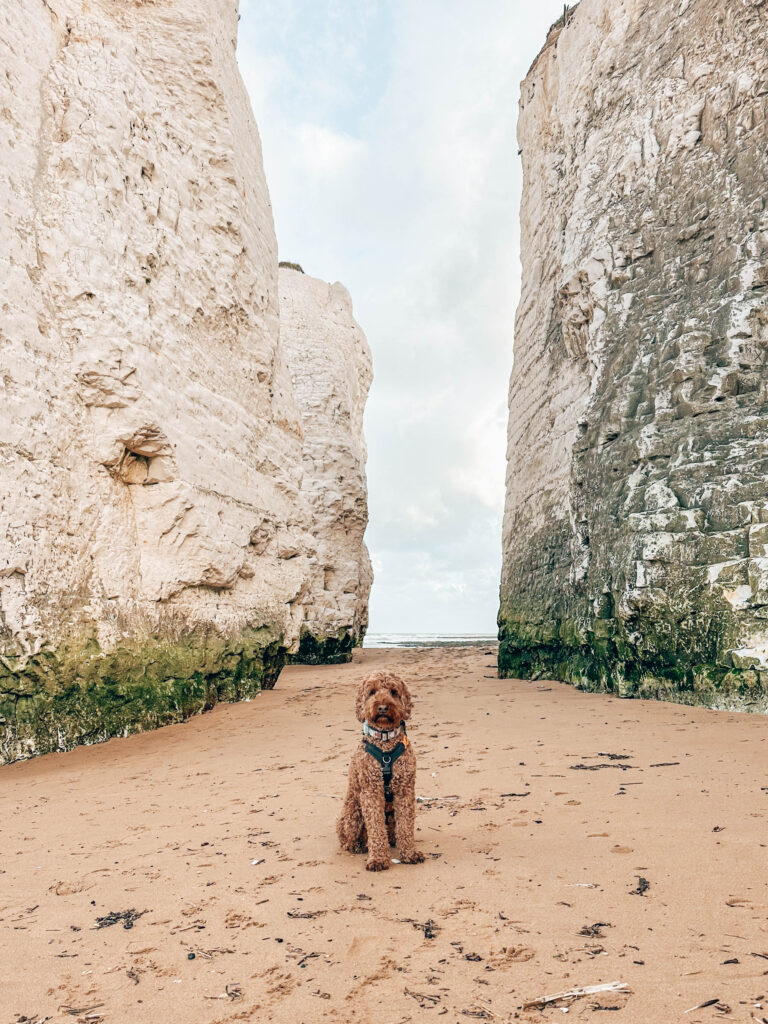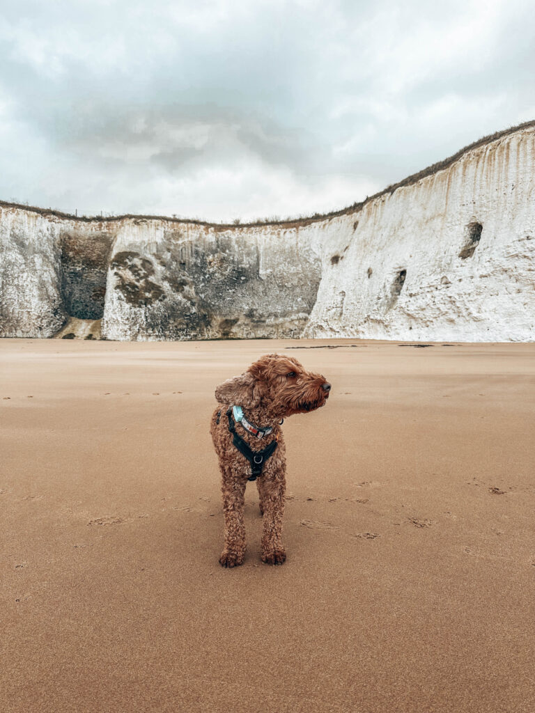 Of course, we have to about Moose’s favourite part, the beach. The fact that we could leave the hotel and be on soft sand within two minutes felt like such a luxury And what really surprised me was how many beaches there are nearby. Within a short 10-minute drive, you’ve got Botany Bay, Joss Bay, Pegwell Bay, Viking Bay… all beautiful, all dog-friendly, and all offering something slightly different. Each one has its own charm, whether you’re after dramatic cliffs, quieter coves, or long stretches perfect for sandy pawprints (just be sure to check the tide times and depending on the time of year you go, it’s worth checking for any seasonal restrictions).
